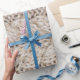 Weiße Strickwoll-Textur Hintergrund. Geschenkpapier
