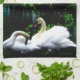 Die Kunstphotographie, welche zwei elegantes Weiß, Schwarzes und orange stummen die Schwäne in einem See kennzeichnet, wird redigiert, um ihm eine painterly Wirksamkeit zu verleihen. Reiches grünes Laub- und Kräuselungs-Set der Hintergrund als der Himmel und Bäume schaffen Reflexionen auf dem dunklen Wasser.
