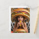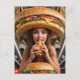 Weiße Surreal-Girl mit Cheeseburger-Hut Postkarte