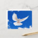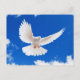 Tierausweis mit einer weißen Taube im Flug im wolkigen Himmel.