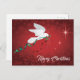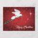 Personalisieren Sie diese "Eine Kind" Weihnachts-Postkarte! Eine serene weiße Taube, die unter den Sternen fliegt...einen Olivenzweig mit blühenden roten und grünen Ribbons tragen! Diese Postkarte hat ein passendes "White Dove"-Adressetikett!