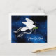 Personalisieren Sie diese einmalige "Eine Art" Dove Postcard! Es gibt eine serene weiße Taube, die zwischen den Sternen fliegt und einen Olivenzweig mit blühenden Silberribbons trägt, der jedem etwas wünscht...."Weltfrieden"!