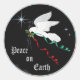Dieses wunderschöne Weihnachtsaufkleber "Einer von einem Kind"..eine ruhige Weiße Taube, die zwischen den Sternen fliegt und einen Olivenzweig mit fließenden Rot & Grün Ribbons trägt.....Weltfrieden verbreiten! Das ist ein originelles Kunstdesign des Künstlers Kerry Miller.