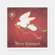 Dekorieren Sie Ihren Weihnachtstisch mit diesem "Eine von einem Kind" Weihnachten Napkin! Es verfügt über eine serene weiße Taube fliegen zwischen den Sternen Carry eine Olivenzweig mit blühenden Rot & Grün Ribbons! Dies ist ein Original Design von Künstler Kerry Miller.