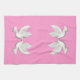Weiße Tauben auf rosa Küchentücher