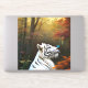 In einem ruhigen Teil des Dschungels ist ein weißer Tiger, der den blauen Schmetterling liebt, der auf seiner Nase landen will.