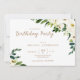 Weiße Aquarellblume Geburtstagsfeier Einladung. Gold-Text.