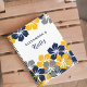 Ein ästhetisch ansprechendes Blumenmuster aus Grau/Grau, Blau und Gelb auf weißem Hintergrund. Personalisieren Sie diese, indem Sie Ihren Namen hinzufügen.