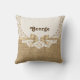 Weiß doily mit Spitzen und Leinen natürlichen Burlap-Design, die eine weiße Runde doily mit Spitze auf Leinen natürlichen Burlap mit Band und Bogen in Beige mit metallischem Effekt und ein weißes Juwel. Text in braun. Beachten Sie, dass Spitzen, Burlap, Blume und Juwel alle "bedruckt" sind und nicht echtes Gewebe, Metall, Edelstein oder Kristall. Dieses elegante, raffinierte und romantische Design mit rustikalem Wesen ist vollständig anpassbar und kann personalisiert sein.