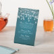 Weiße Twinkle-String-Leuchten auf Aquamarinen Sockelschild