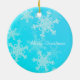 Weiße und blaue Weihnachtsschneeflocken Keramikornament