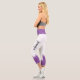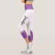 Diese lila und weißen Leggings mit stilvollem Workout zeichnen sich durch ein elegantes, weißes Blumendesign auf dunklem Lavendelboden am Bund und an den Beinen mit weißen Streifen aus. Einfach anpassbar, indem Sie auf beiden Seiten Ihren Namen auf einem kalligraphischen schwarzen Schriftart hinzufügen.