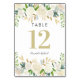 Weiße und goldene Blumenkarten Tischnummer