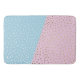 Badematte mit weißen und goldenen Punkten auf blauem und rosa Hintergrund.