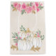 Eine Geschenktasche mit extravaganten Wasserfarben weißen Kürbis mit Akzenten der Imitate Gold Glitzer. Umgeben von grünen Blätter und rosa wilden Blume.