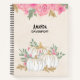 Ein personalisiertes Wendelheft mit extravaganten Wasserfarbenkürbis mit Akzenten von Imitaten goldenen Glitzer. Umgeben von grünen Blätter und rosa wilden Blume.