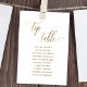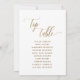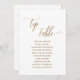 Elegante, weiße und goldene Tischsitzkarte mit schönen handgeschriebenen Kalligrafiedetails. "Top Table" in attraktiven Imitats Goldfolienprint. Doppelseitige Karte, mit der die Gäste ihre Namen von vorne und hinten anschauen können. Durch das Löschen des Raumes ist es Ihnen möglich, Clips oder Lochlöcher für hängende Displays zu verwenden oder Tischhalter oder Rahmen zu verwenden. Weißer Hintergrund und Text in schwarz. Möglichkeit zur Änderung der Hintergrundfarbe in eine andere Farbe, indem Sie "Weiter anpassen" wählen. Sie können das Design bearbeiten. Bitte wenden Sie alle Änderungen sowohl auf Vorder- als auch auf Rückseite an. Eine passende Karte mit einer Vorlage zur Erholung der Tischnummern und Gästennamen ist ebenfalls verfügbar. Teil unserer Kollektion "Moderne Elegante Wedding and Events Signage" mit einer Vielzahl von Produkten zur Koordination.