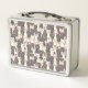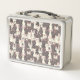 Nahtloses Muster mit weißem, grauem, gestreiftem Tablett und gepunkteten Katzen