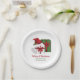 Weiße und grüne Geschenkboxen mit Weihnachtsmannmü Pappteller