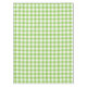 Eine überprüfte gemusterte farbige Tischdecke der einfachen Ginghamart im Weiß auf einem hellen festlichen grünen Hintergrund oder ändern die Farbe des Hintergrundes zur Krawatte herein mit Ihrer eigenen speisenden Farbwahl. Entworfen durch Sarah Trett.