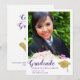 Erstellen Sie mit dem Foto Ihres Absolventen für den Abschluss 2025 eine lila und elegante Ankündigung. Dieses Design ist mit einem Graduiertencap und Diplomabbildungen in goldgelben Farben dekoriert. Die Vorlage macht es einfach, die Ankündigung des Abschlusses mit einem Namen, Jahr, Schulname, Foto und anderem Text zu personalisieren.