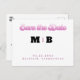 Save the Date die 70er Jahre Monogramm. Hochzeit. Vor- und Nachnamen. Spaß. Postkarte. Pink.