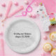Weiße und silberne Spitzen und Perlen auf Satin Pappteller