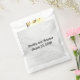 Schöne weiß-silberne Spitzen und Perlen auf einem satinierten Hintergrund schaffen einen eleganten Hintergrund für Ihre Gastgeschenk Hochzeit-Tasche.