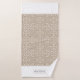 Weiße und blass taupe Damast-Muster und weiße geschossene Rahmen Bath Handtuch Set. Das Badetuch weist ein elegantes, weißes und taupe Damast-Muster auf, die kurzen Seiten sind mit geschliffenen Kanten geschmückt. Es gibt auch einen Rahmen mit Ihrem Familiennamen. Das Handtuch zeigt einen geschossenen Rahmen, während das Waschtuch in der Mitte weiß mit einem Damast-Rahmen und dem Monogramm ist. Sie können es mit Ihrem Familiennamen und Monogramm personalisieren.