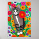 Hübsche Volkskunst mit Kater und roter Blume ai art. Generativekonzenz