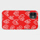Dieser Handy-Fall hat eine Mitte des Jahrhunderts moderne Valentine Design der weißen Herz maßt auf einem Feld von rot.
