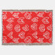 Dieses Schlagtuch hat ein Mitte des Jahrhunderts modernes Valentinisches Design von verstreuten weißen Herz maßt auf einem Feld von rot.