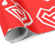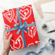 Dieses Verpackungspapier hat ein zeitgemäßes Valentindesign aus verstreuten weißen Herzstücken auf einem roten Feld.