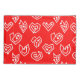 Dieser Kissenkoffer hat ein modernes Valentindesign aus verstreuten weißen Herzstücken auf einem roten Feld.