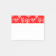 Dieses Notizblock aus der Post-It-Zeit hat ein zeitgemäßes Valentindesign aus verstreuten weißen Herzklopfen auf einem roten Feld.