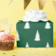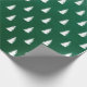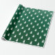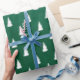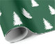 Weihnachtsgeschenkpapier mit einem weißen Fichtenbaum in einem wiederholten Muster auf einem ombre grünen Waldhintergrund.