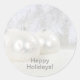 Weiße Weihnachtsbälle im Hintergrund Runder Aufkleber