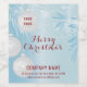 Moderne weiße Weihnachtsbällchen und Schneeflocken auf babyblauem Hintergrund