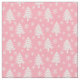 Dieser lustige, rosa und weiße Weihnachtsstoff zeichnet sich durch einen skurrilen Weihnachtsbaum und ein Schneeflockenmuster aus.