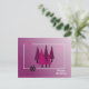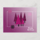 Ein hübsches Design mit skurrilen Weihnachtsbäumen auf einem schattigen lila Hintergrund. Kleine farbige Schneeflocken tanzen.