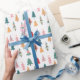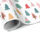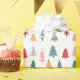 Festliches Weihnachtspapier, mit einem skurrilen Muster von bunten Bäumen.