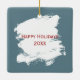 Weiße Weihnachtskatze auf einem Zaun Keramikornament
