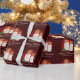 Weiße Weihnachtskerzen auf Rot mit individuellem T Geschenkpapier