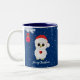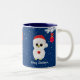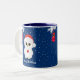 Niedliche weiße Weihnachtskeule auf blauem Hintergrund Tasse. Text kann personalisiert sein. Frohe Weihnachten!