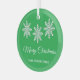 Weiße Weihnachtsschneeflocken Frohe Weihnachtsgrün Ornament Aus Glas