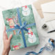 Weiße Weihnachtsschneemänner und Rentier - Grün Geschenkpapier