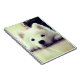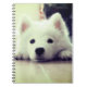 Dieses Notebook hat einen niedlichen, weißen Welpen, der darauf abgebildet ist.