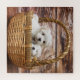 Zwei hübsche kleine weiße Welpen in einem Korb, auf diesem wunderbaren Puzzle.