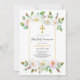 Weiße, rosa wilde Hündin Rose gelbes Blumenmädchen Erste Heilige Kommunion Einladung. Dieses Design präsentiert die Rose der Aquarellfarben Weiß und Rosa mit grünen Blätter auf den oberen und unteren Teilen und den Text in einem gelben Rahmen. Die Rückseite ist blassgelb.