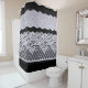Weiße Zierspitze abgeschieden auf schwarzem Hinter Duschvorhang